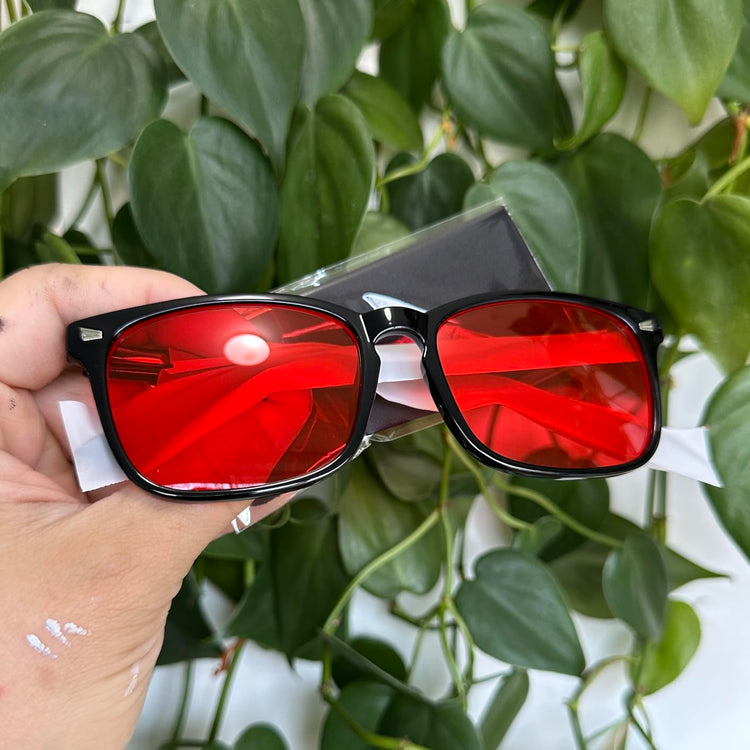 Las lentes rojas están pensadas para usar por la noche. Filtran la mayor parte de la luz azul y verde de alta intensidad, ayudando a relajar la vista antes de dormir y a reducir la estimulación visual de las pantallas.