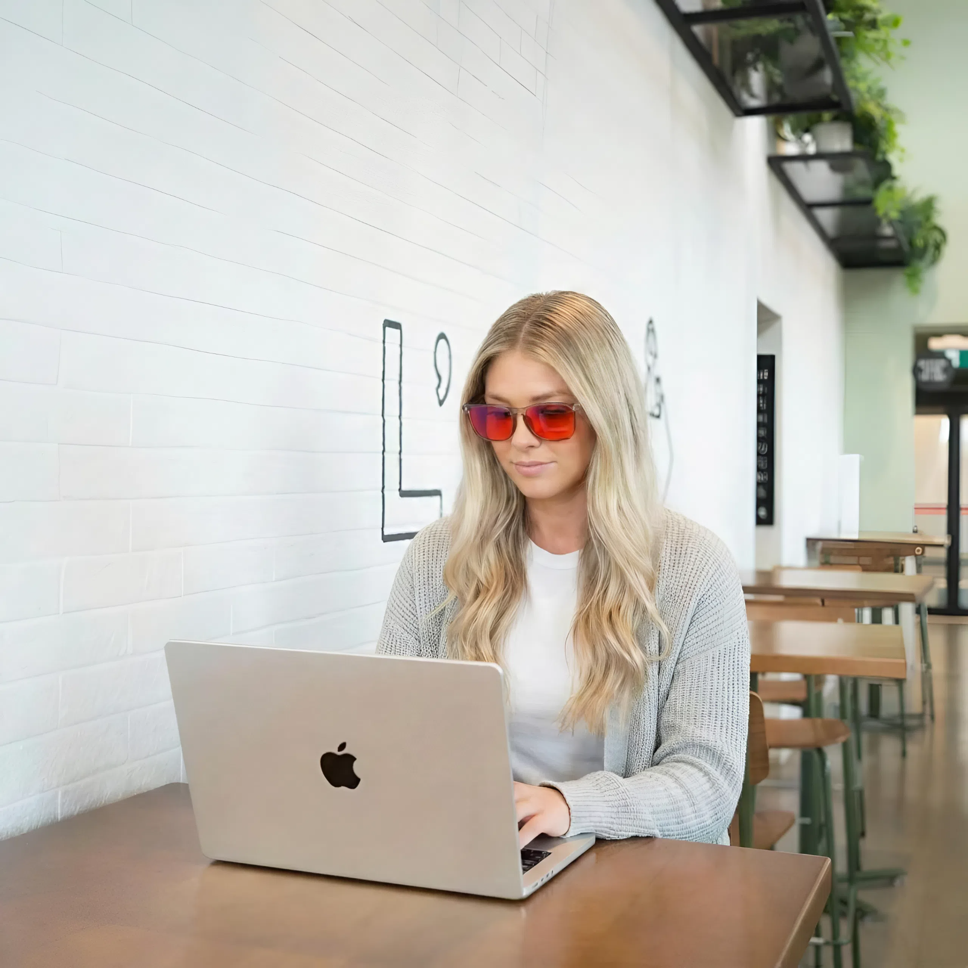Nuestras lentes ámbar y rojas están diseñadas para ofrecer una filtración mucho más alta, especialmente útil para quienes usan pantallas durante muchas horas.